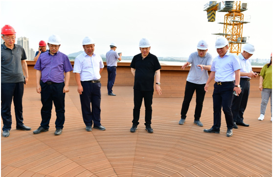 7月3日,山東省住建廳總工程師梁澤慶、質量評估中心主任王華杰、威海市住建局副局長吳洪濤、榮成市住建局副局長王學強、榮成市建筑工程事物服務中心主任孫乃毅一行蒞臨我公司施工的榮成市少年宮工程現場進行視察指導。集團董事長于海國、副總經理倪積林、周廣巖、張華波及項目相關管理人員陪同。